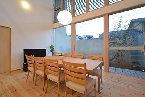 リビングの様子2。窓には電動のブラインドが設置されています。